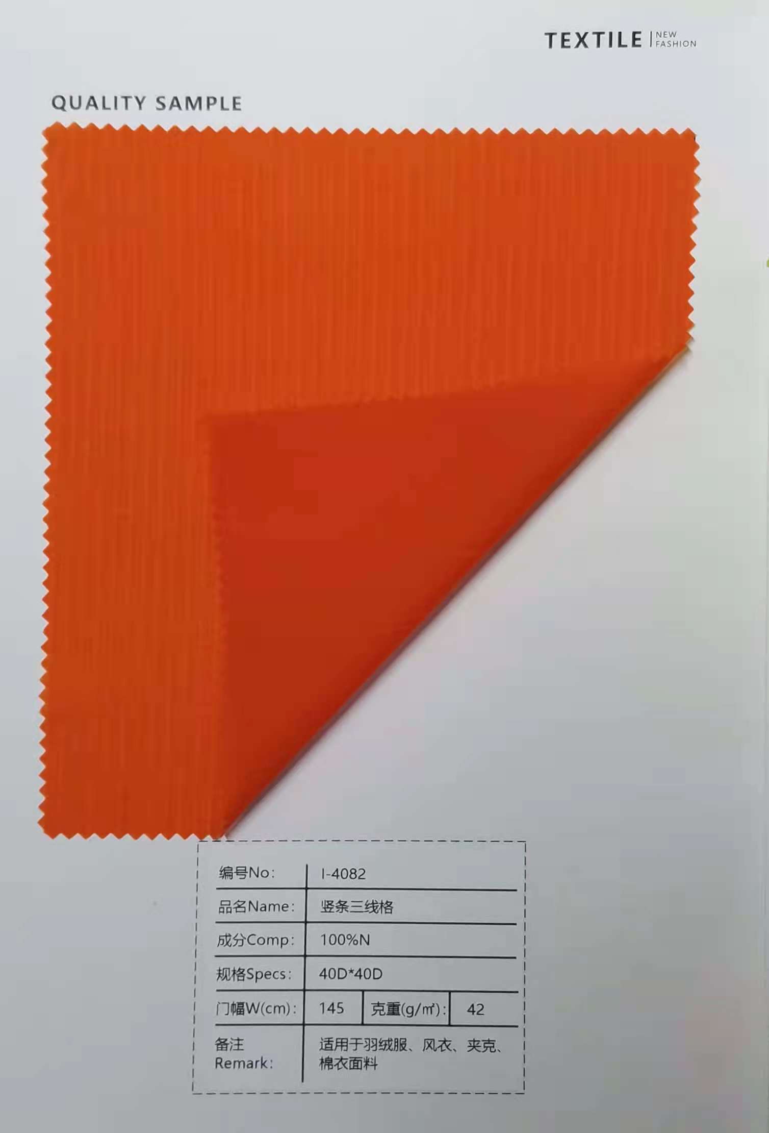 豎條三線(xiàn)格羽絨服風(fēng)衣夾克棉衣40D 42克面料