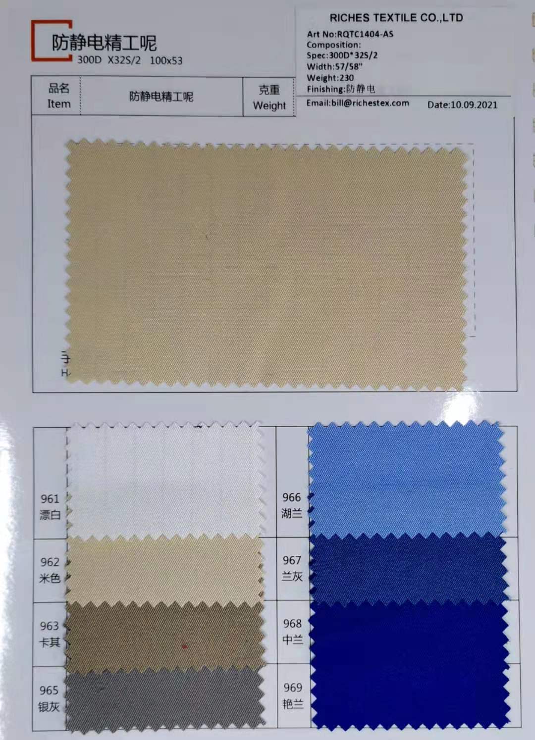 - 抗油拒水防靜電32/2*32/2 245克面料